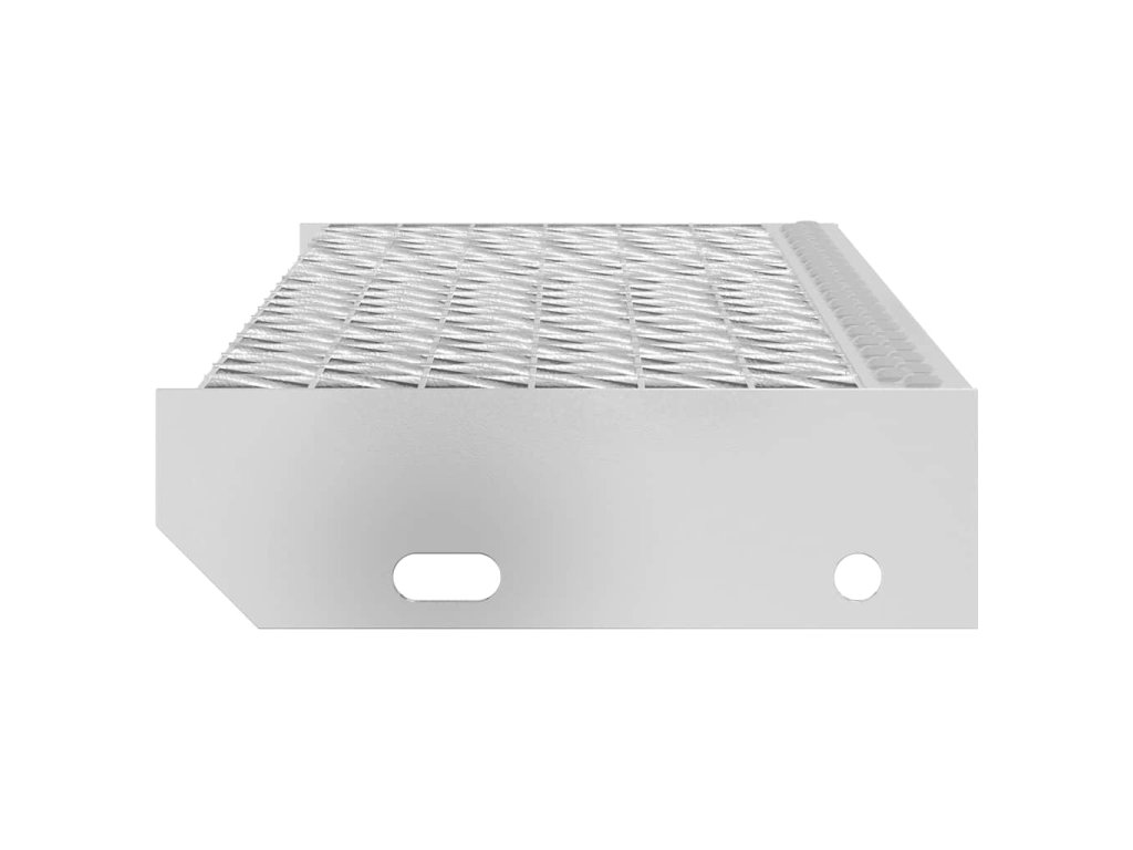- Protiskluzová konstrukce: Tento schodišťový rošt má protiskluzový povrch a hrany, což snižuje riziko nehod, takže se jedná o bezpečnou volbu do rizikových prostor nebo všude tam, kde je bezpečnost na prvním místě.