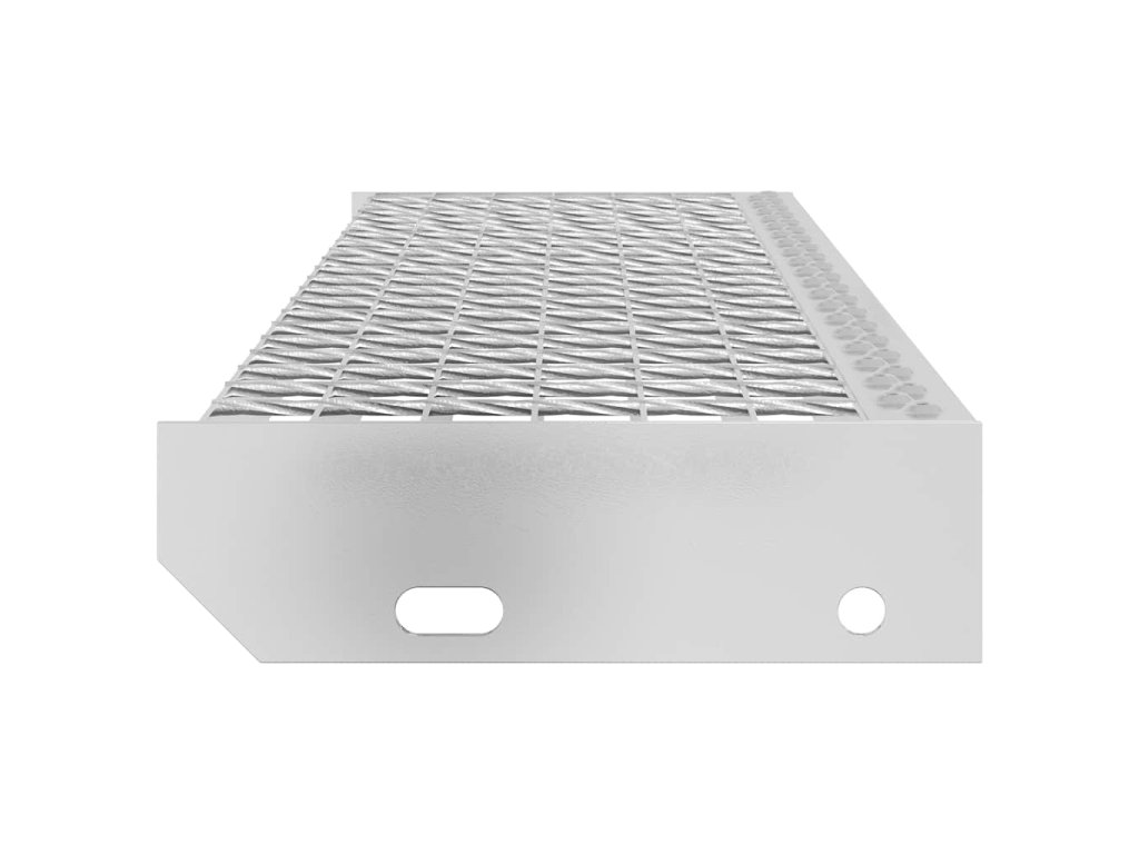 - Protiskluzová konstrukce: Tento schodišťový rošt má protiskluzový povrch a hrany, což snižuje riziko nehod, takže se jedná o bezpečnou volbu do rizikových prostor nebo všude tam, kde je bezpečnost na prvním místě.