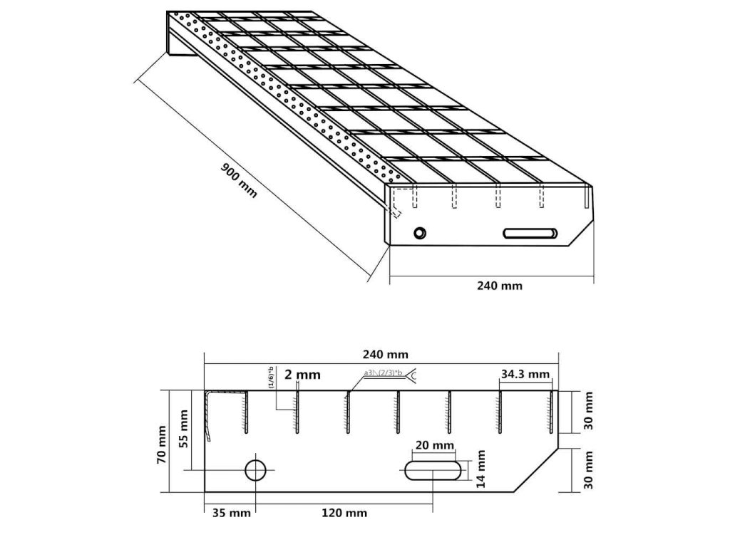 - Všestrannost: Pororošt tohoto schodišťového stupně slouží jako odtokový kryt a umožňuje průtok vody, oleje a sněhu. To zajišťuje bezpečný povrch pro chůzi po schodech.