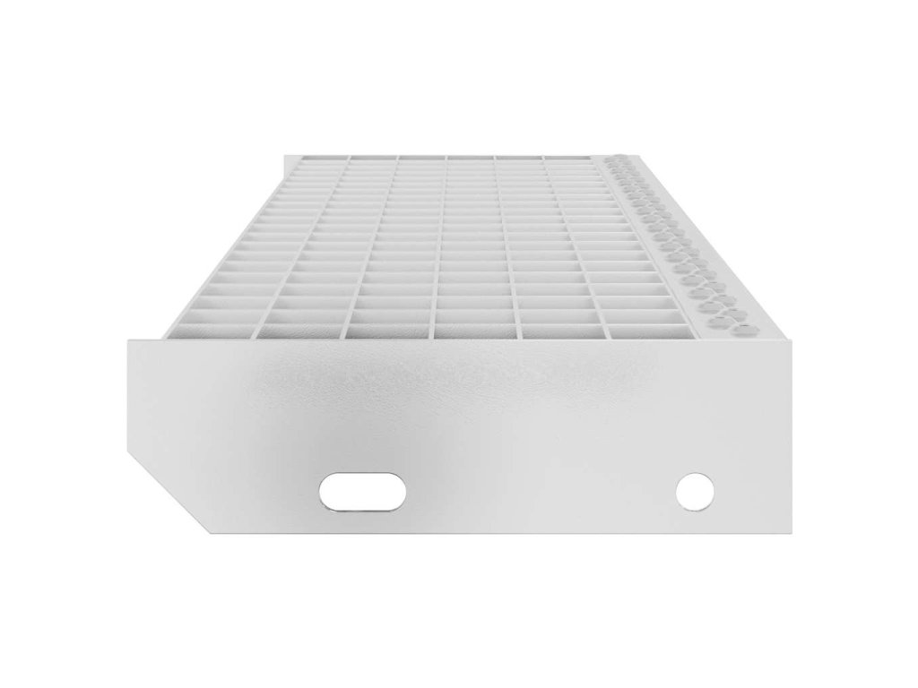 - Protiskluzová konstrukce: Tento schodišťový rošt má protiskluzový povrch a hrany, což snižuje riziko nehod, takže se jedná o bezpečnou volbu do rizikových prostor nebo všude tam, kde je bezpečnost na prvním místě.