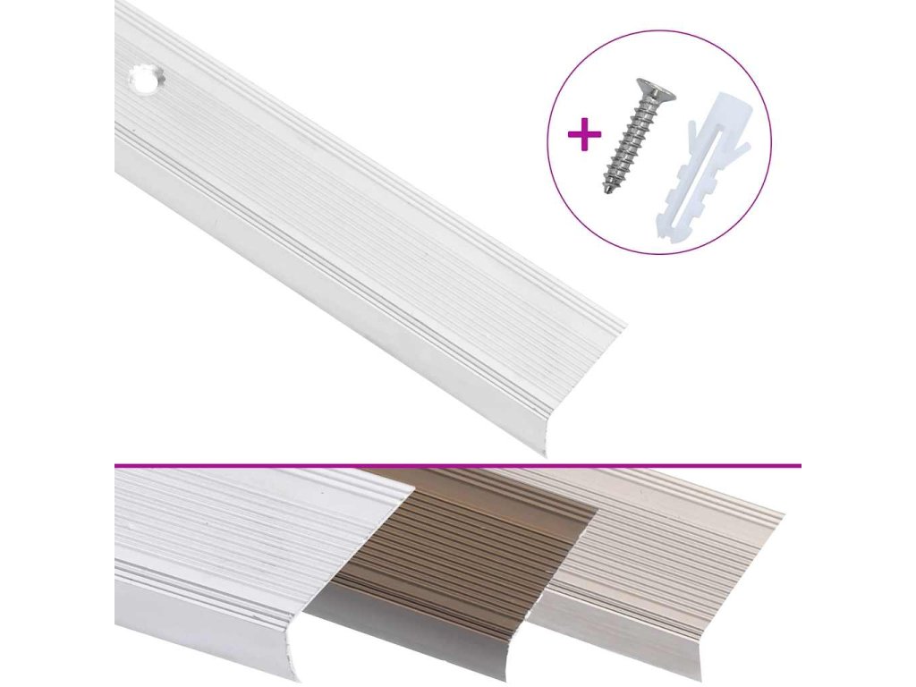 Schodišťové profily jsou ideální pro bydlení se schody, zejména pro domácí schodiště. Každá hrana schodiště ve tvaru písmene L je vyrobená z hliníku s protiskluzovým plastovým insertem a je lehká. L profily s předvrtanými otvory se extrémně snadno a rychle instalují, hmoždinky a šrouby jsou součástí balení.