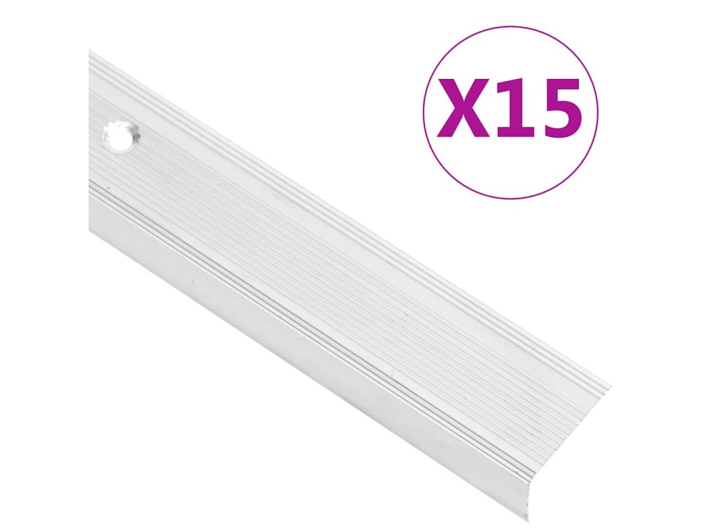 Schodové hrany ve tvaru L 15 ks hliník 90 cm stříbrné 146732