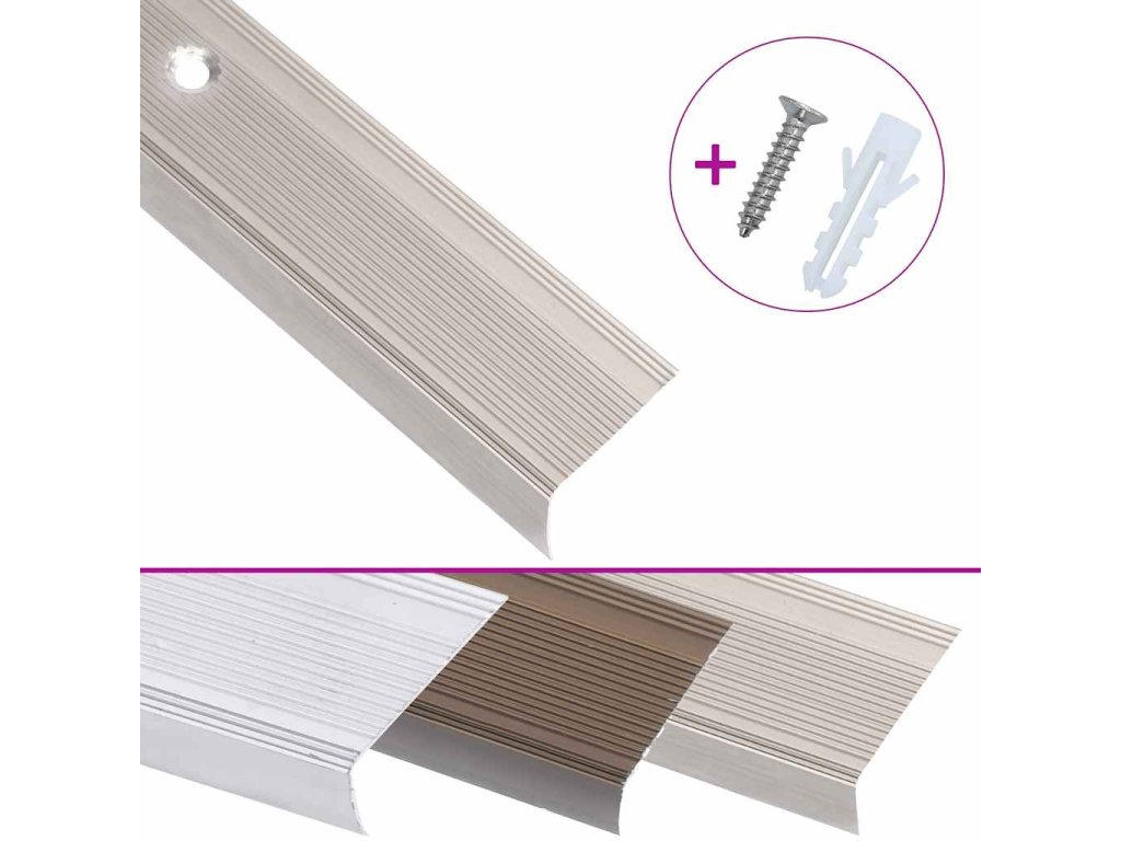 Schodišťové profily jsou ideální pro bydlení se schody, zejména pro domácí schodiště. Každá hrana schodiště ve tvaru písmene L je vyrobená z hliníku s protiskluzovým plastovým insertem a je lehká. L profily s předvrtanými otvory se extrémně snadno a rychle instalují, hmoždinky a šrouby jsou součástí balení.