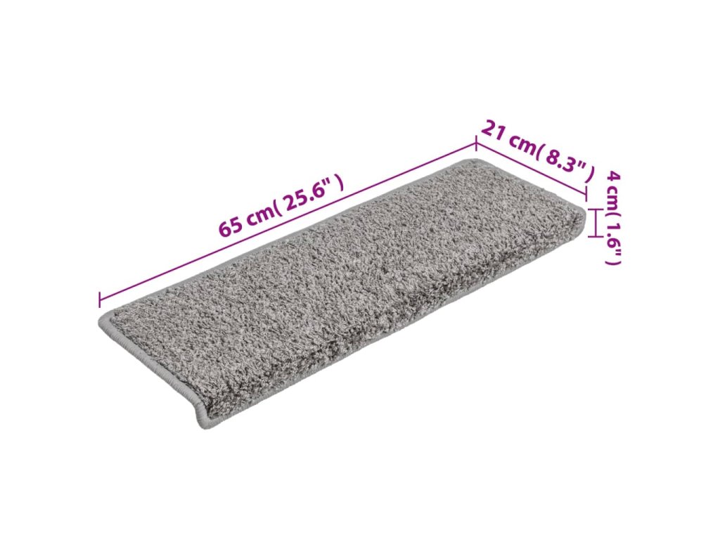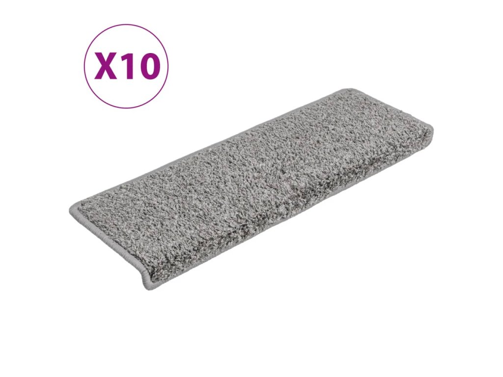 Schodové rohože 10 ks 65 x 21 x 4 cm šedé s obdélníkovým okrajem 149815