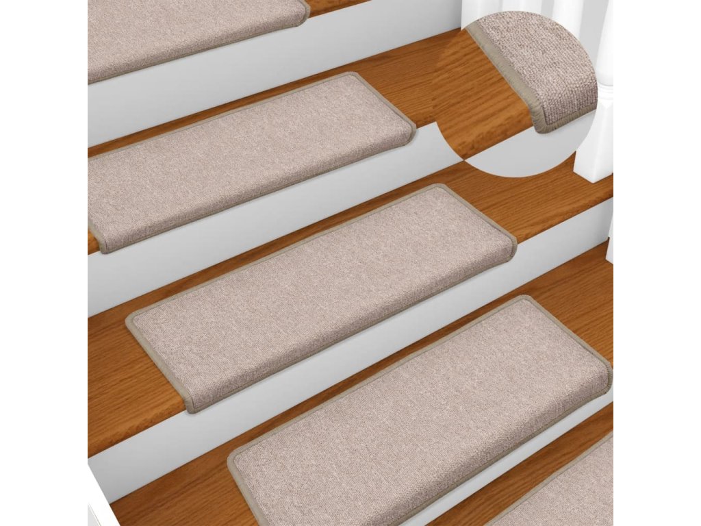 Schodové rohože 15 ks 65 x 21 x 4 cm béžové s obdélníkovým okrajem 134573