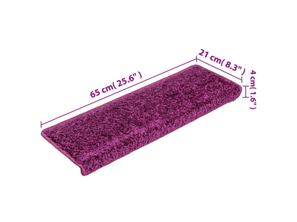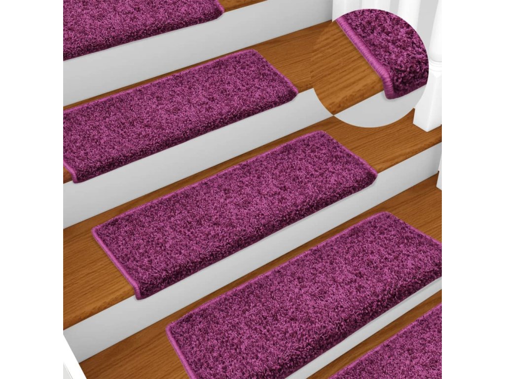 Schodové rohože 15 ks 65 x 21 x 4 cm fialové s obdélníkovým okrajem 134580