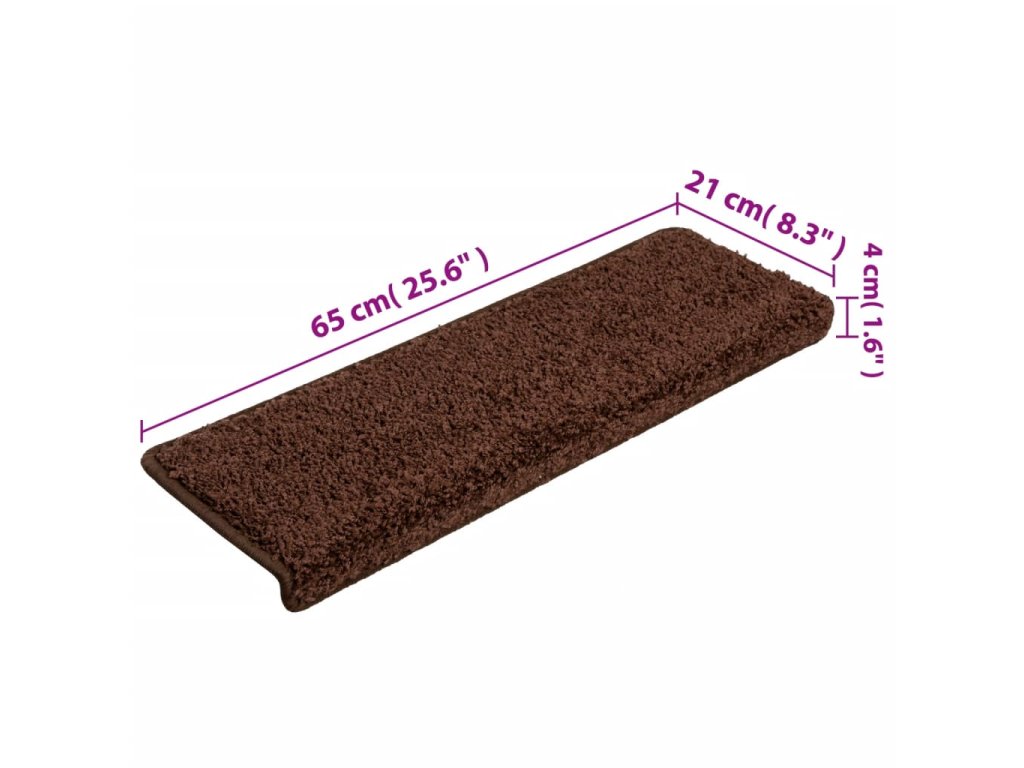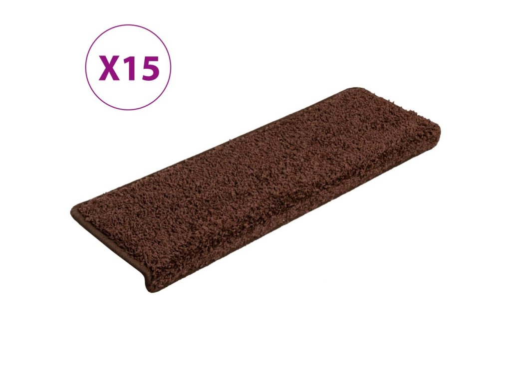 Schodové rohože 15 ks 65 x 21 x 4 cm hnědé s obdélníkovým okrajem 134578