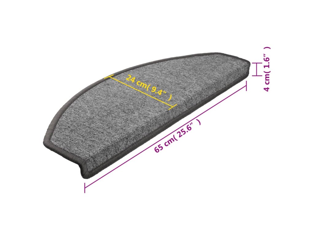 Schodové rohože 15 ks 65 x 24 x 4 cm tmavě šedé, půlkulaté, velké 133885