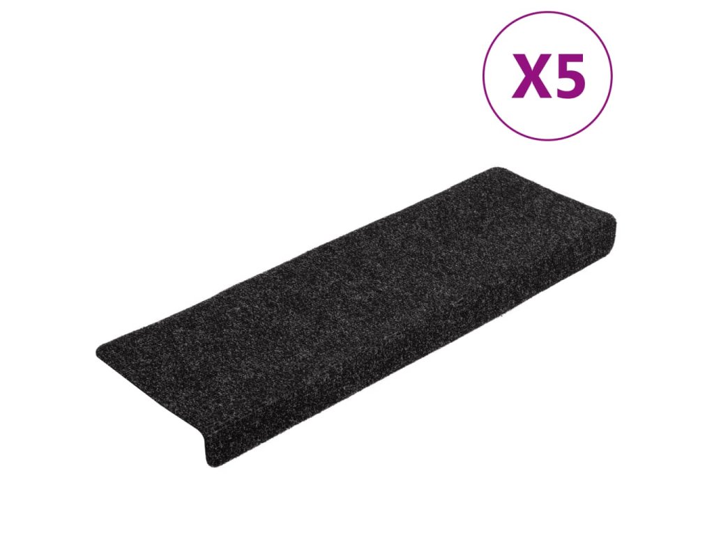 Schodové rohože samolepicí 5 ks 65 x 21 x 4 cm černé s obdélníkovým okrajem 149726