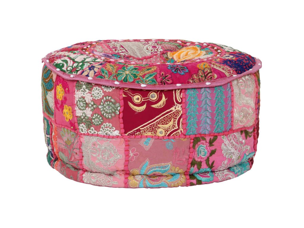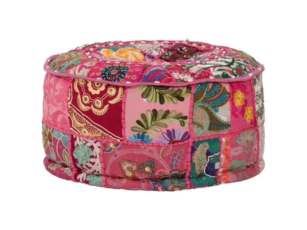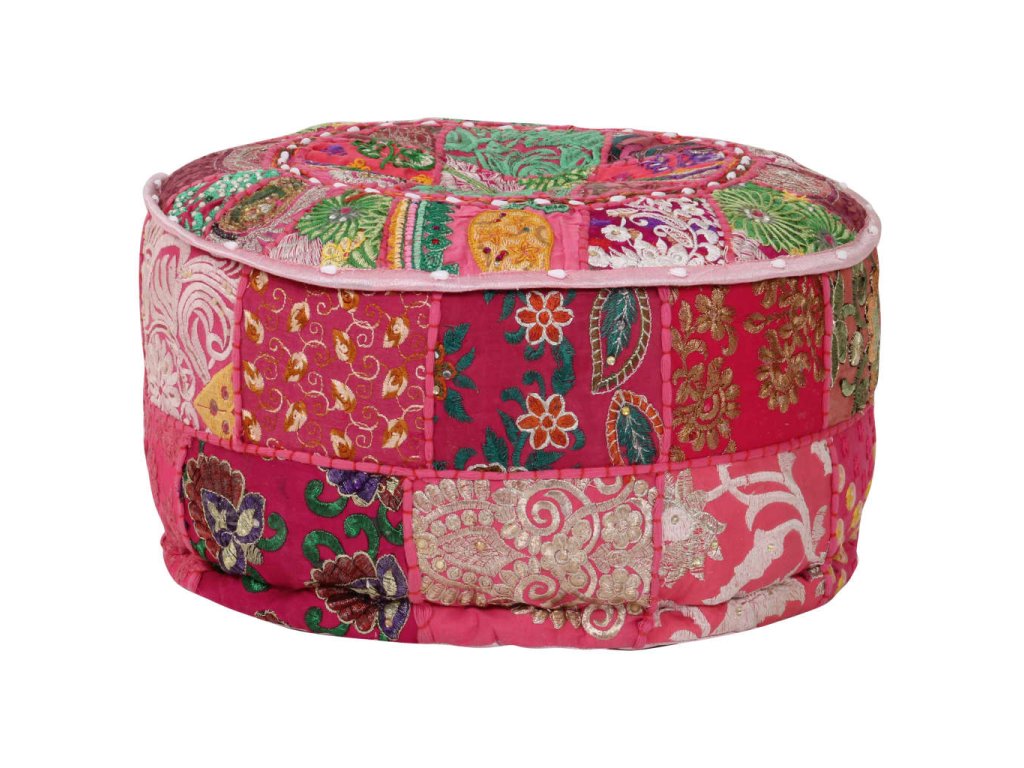 Tento taburet je ručně vyrobený ze 100% bavlny s výplní, a je tudíž měkký a pohodlný. Je hustě pokrytý nádhernými exotickými výšivkami, které vaší domácnosti dodají indický styl. Postavte puf před pohovku nebo křeslo a váš pokoj bude hned působit útulněji!