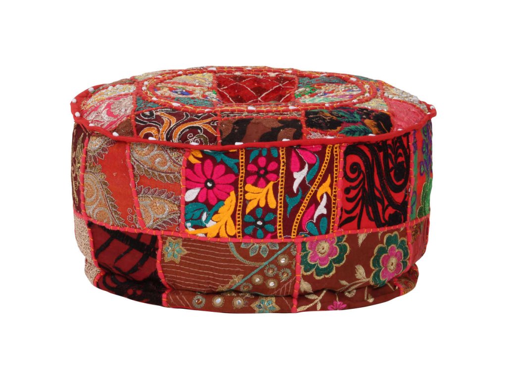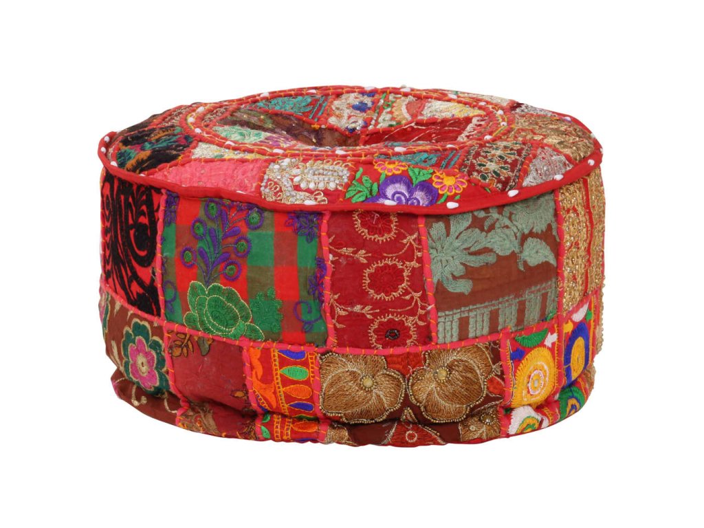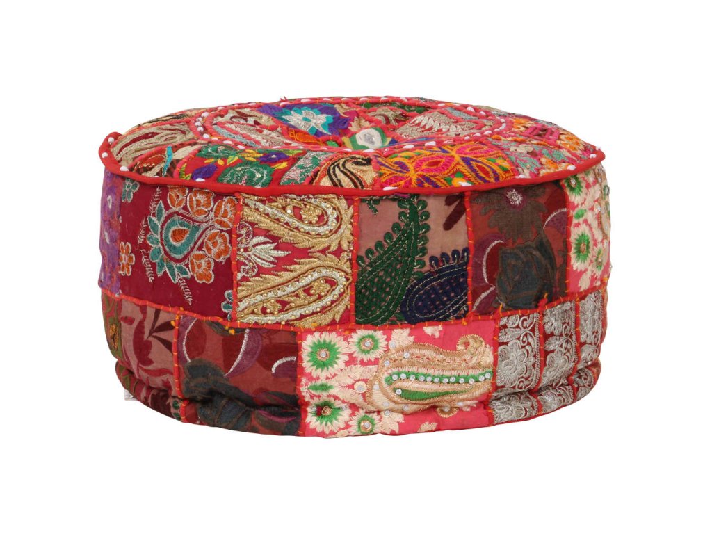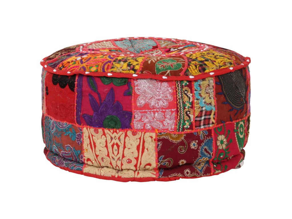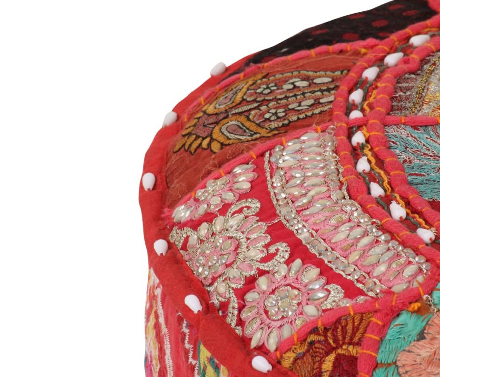 Tento taburet je ručně vyrobený ze 100% bavlny s výplní, a je tudíž měkký a pohodlný. Je hustě pokrytý nádhernými exotickými výšivkami, které vaší domácnosti dodají indický styl. Postavte puf před pohovku nebo křeslo a váš pokoj bude hned působit útulněji!