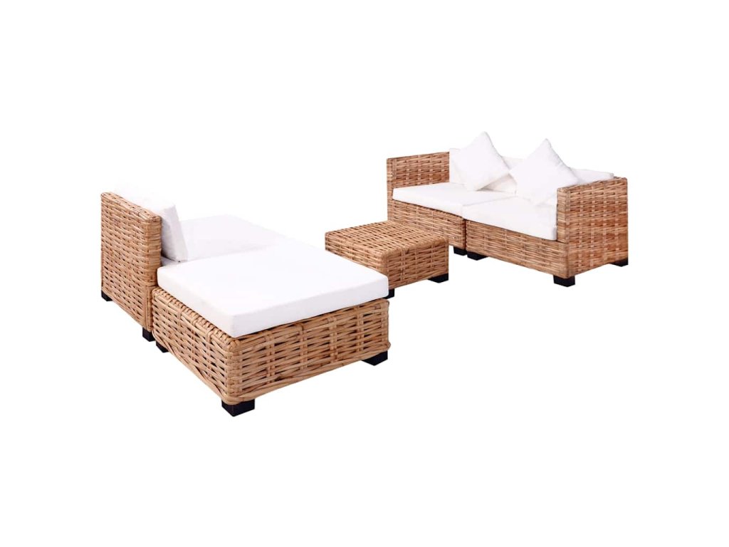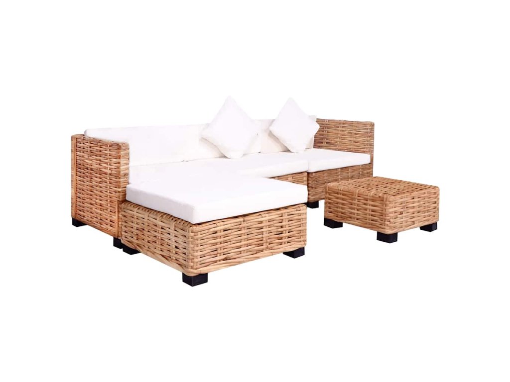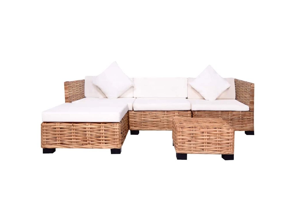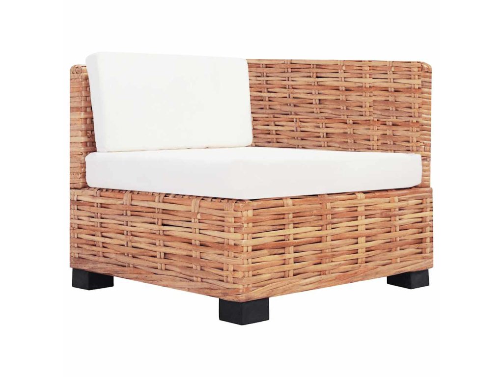 Tato sedací souprava je pokrytá přírodním ratanem, který nejen, že dobře vypadá, ale je také velmi odolný. Ratan má líbivý přirozený vzhled a je příjemný na dotek. Mimo to je také zajímavě propletený. Nohy sedačky jsou vyrobeny z vysoce kvalitního mahagonu. Pohodlné polštářky vypadají útulně. Celá souprava tak do vašeho pokoje vnese venkovské kouzlo. Její montáž je velmi snadná.