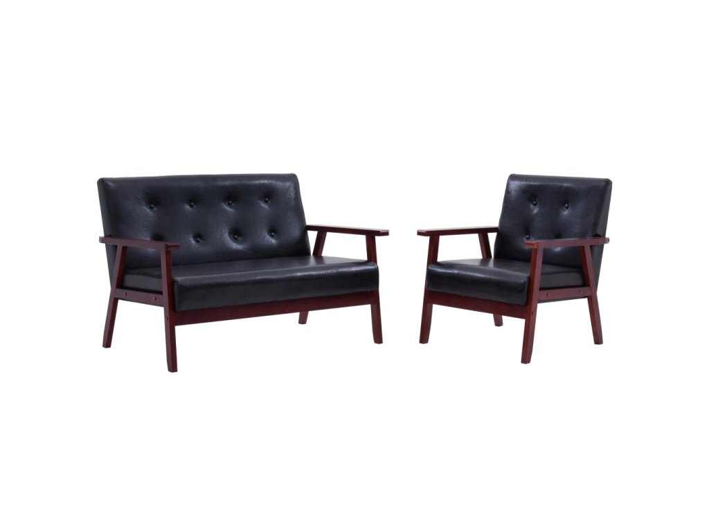 Čalounění soupravy je vyrobené z měkké umělé kůže, které je polstrované pohodlnou pěnou. Rám z dřevěného masivu pak zaručuje stabilitu a odolnost sedací soupravy.