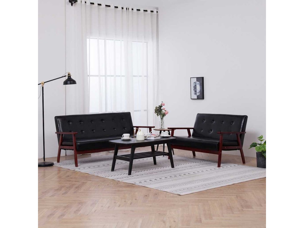 Čalounění soupravy je vyrobené z měkké umělé kůže, které je polstrované pohodlnou pěnou. Rám z dřevěného masivu pak zaručuje stabilitu a odolnost sedací soupravy.