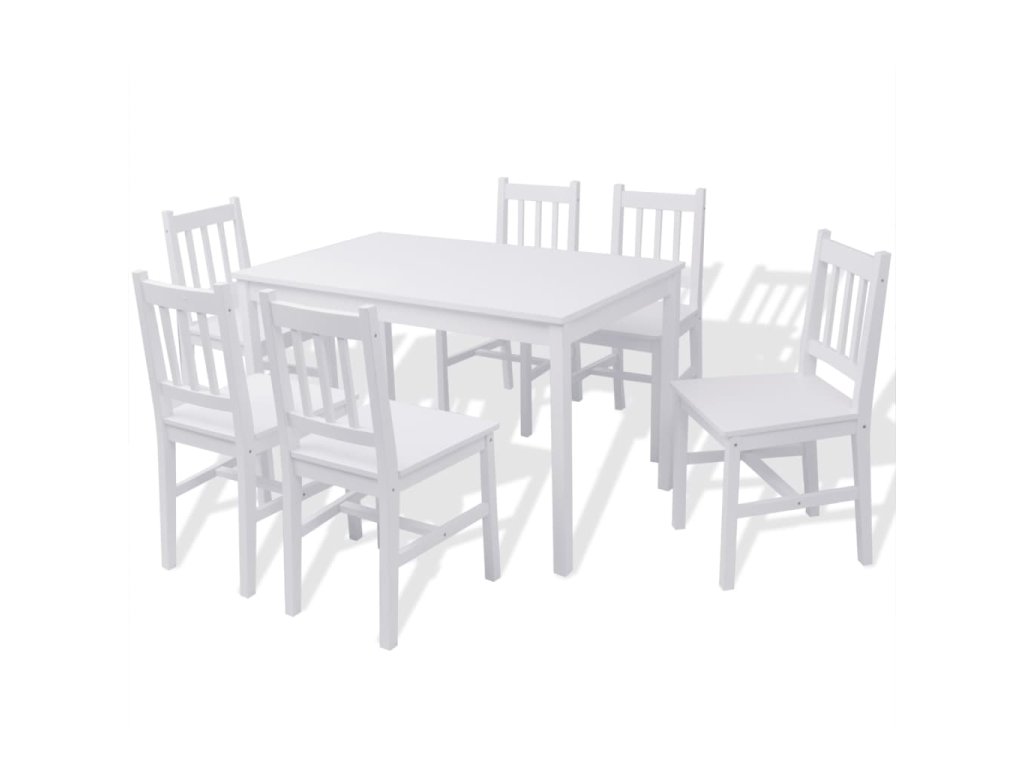 Sedmidílný jídelní set z borového dřeva bílý 242959
