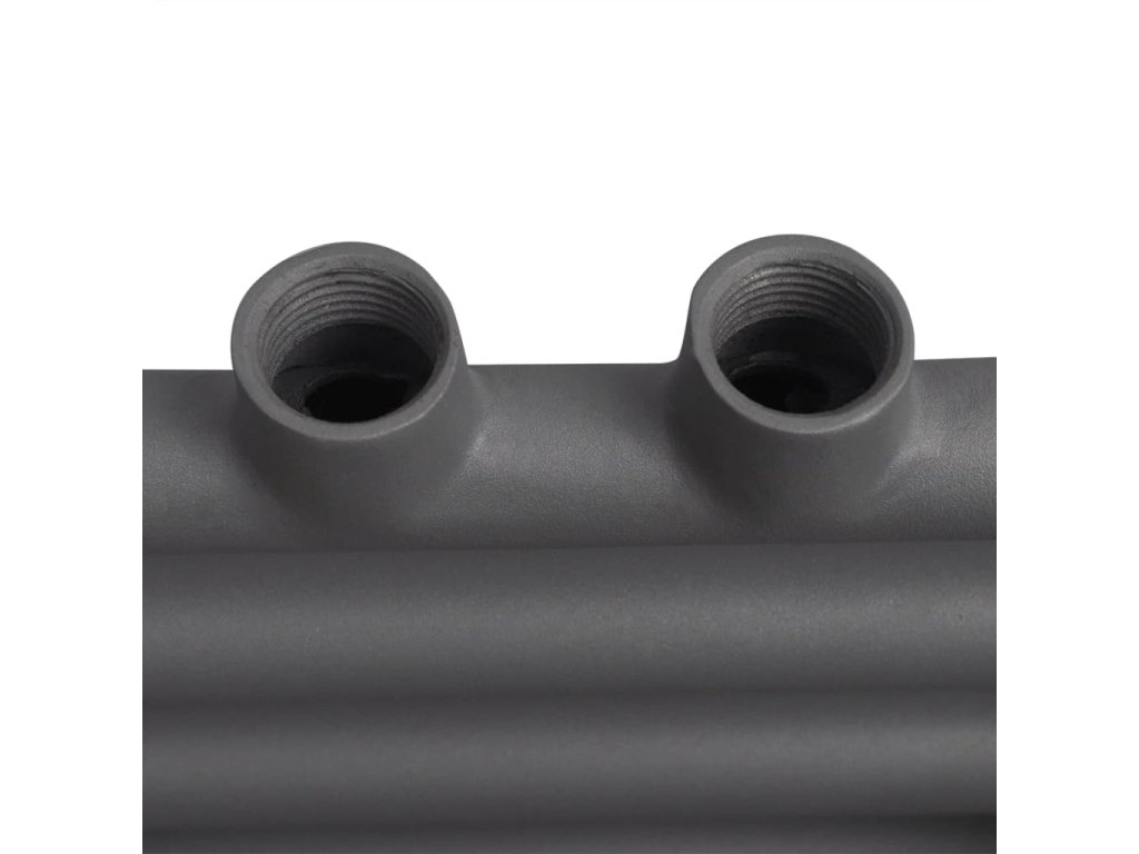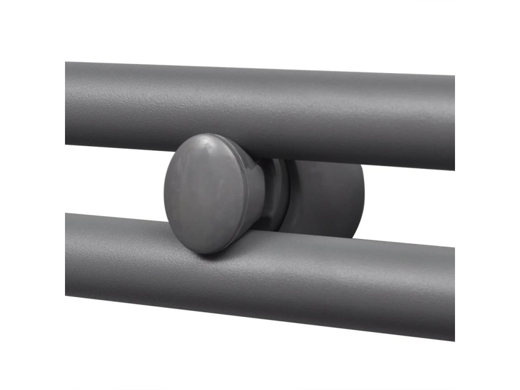 Vzhledem k systému cirkulace horké vody, který nevyžaduje připojení k elektrické síti, budou vaše ručníky suché v mžiku. Žebříkový radiátor má 12 ocelových trubek o průměru 22 mm a je natřený šedou barvou. Příčné trubky jsou extra silné, a vydávají tak velké množství tepla. Na horním i dolním konci je radiátor opatřen přípojkami na vodu pro optimální proudění vody.