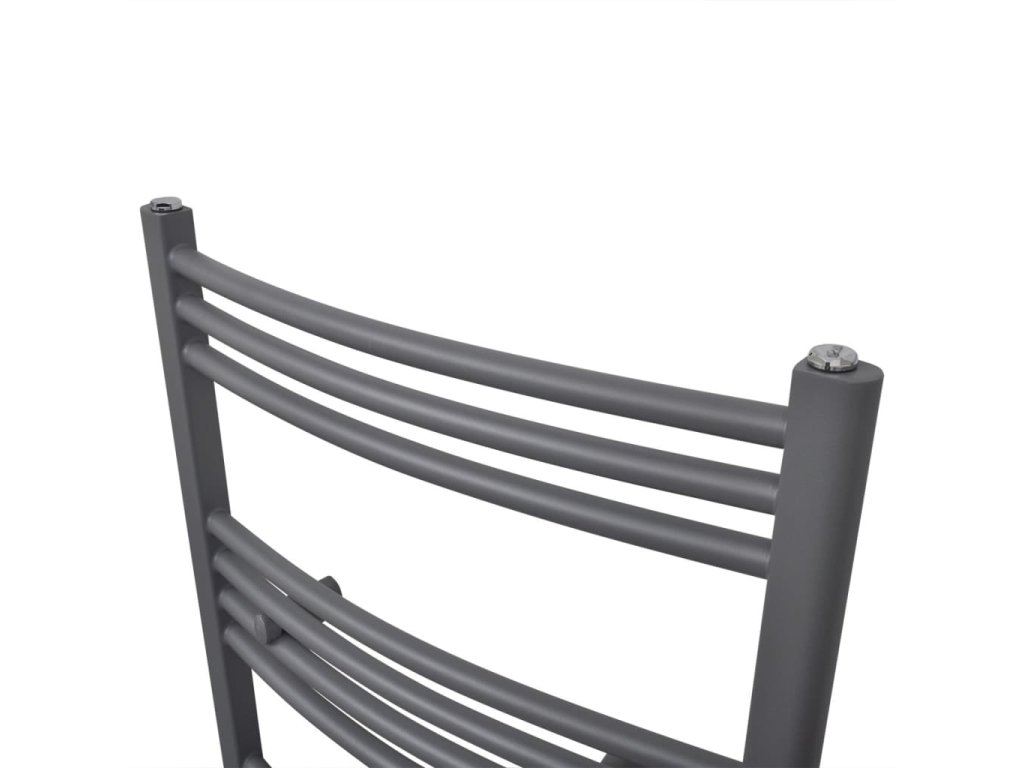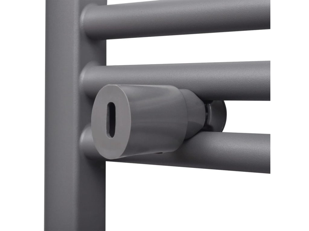 Vzhledem k systému cirkulace horké vody, který nevyžaduje připojení k elektrické síti, budou vaše ručníky suché v mžiku. Žebříkový radiátor má 8 ocelových trubek o průměru 22 mm a je natřený šedou barvou. Příčné trubky jsou extra silné, a vydávají tak velké množství tepla. Na horním i dolním konci je radiátor opatřen přípojkami na vodu pro optimální proudění vody.