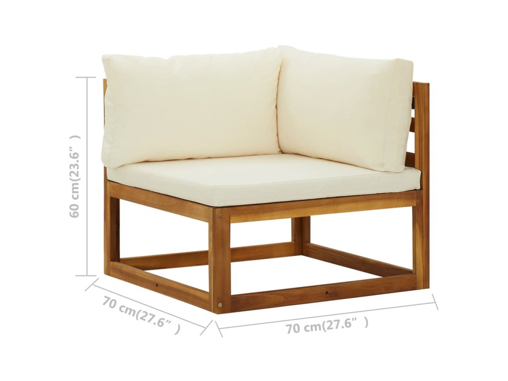 - Masivní akáciové dřevo: Tato rohová pohovka je vyrobena z masivního akáciového dřeva. Masivní akáciové dřevo je nádherný přírodní materiál. Akáciové dřevo je tropické tvrdé dřevo, které má hustou strukturu a je pevné a odolné. Je napuštěné olejem, pohovka je proto vhodná pro venkovní použití.