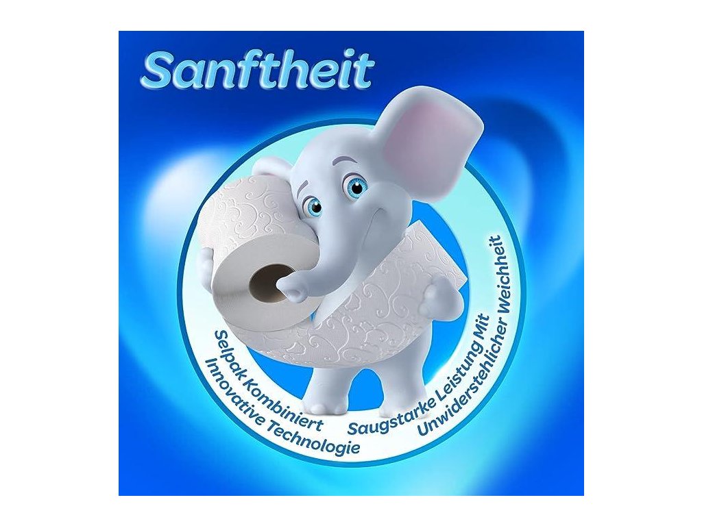 Velké balení kvalitního jemného 3-vrstvého toaletního papíru bez parfemace je vyroben ze 100% celulózy. Velký návin každé role obsahuje 150 útržků (délka role 18,4m) o velkém rozměru 12,4x9,6cm*. Balení v plastovém obalu obsahuje 24 rolí