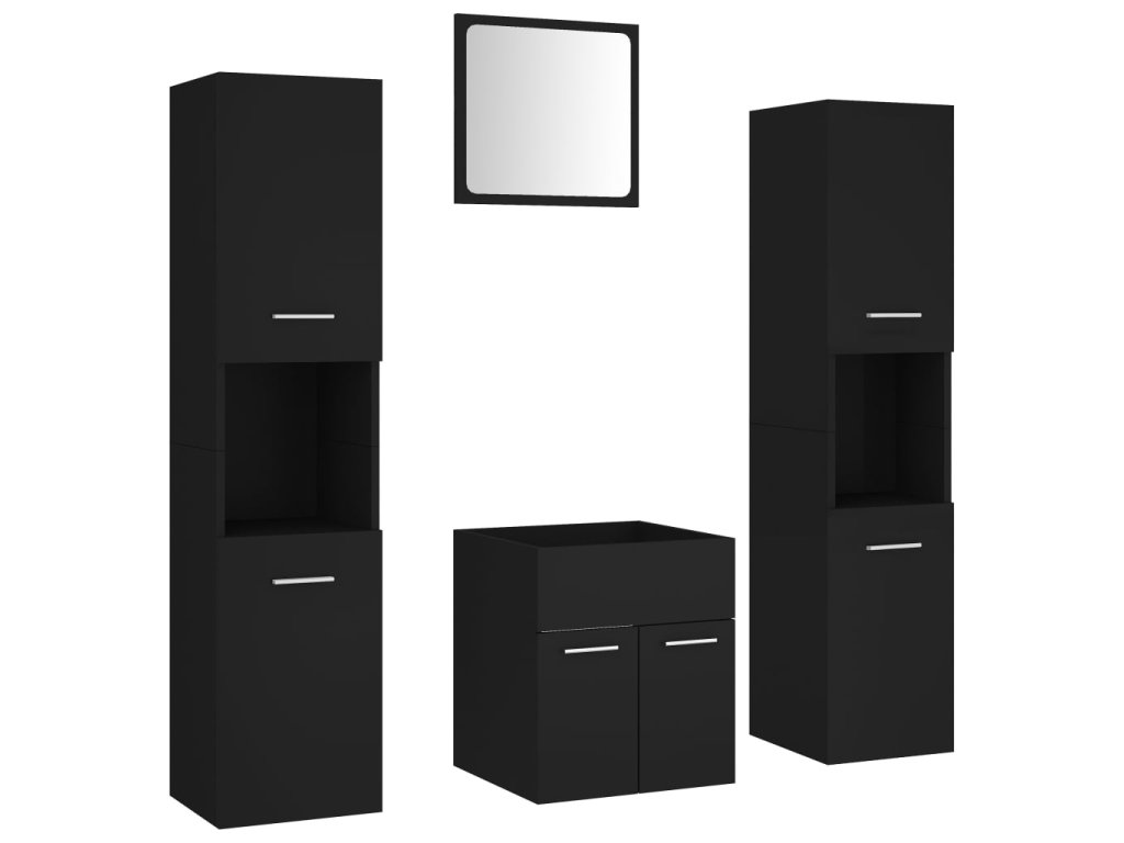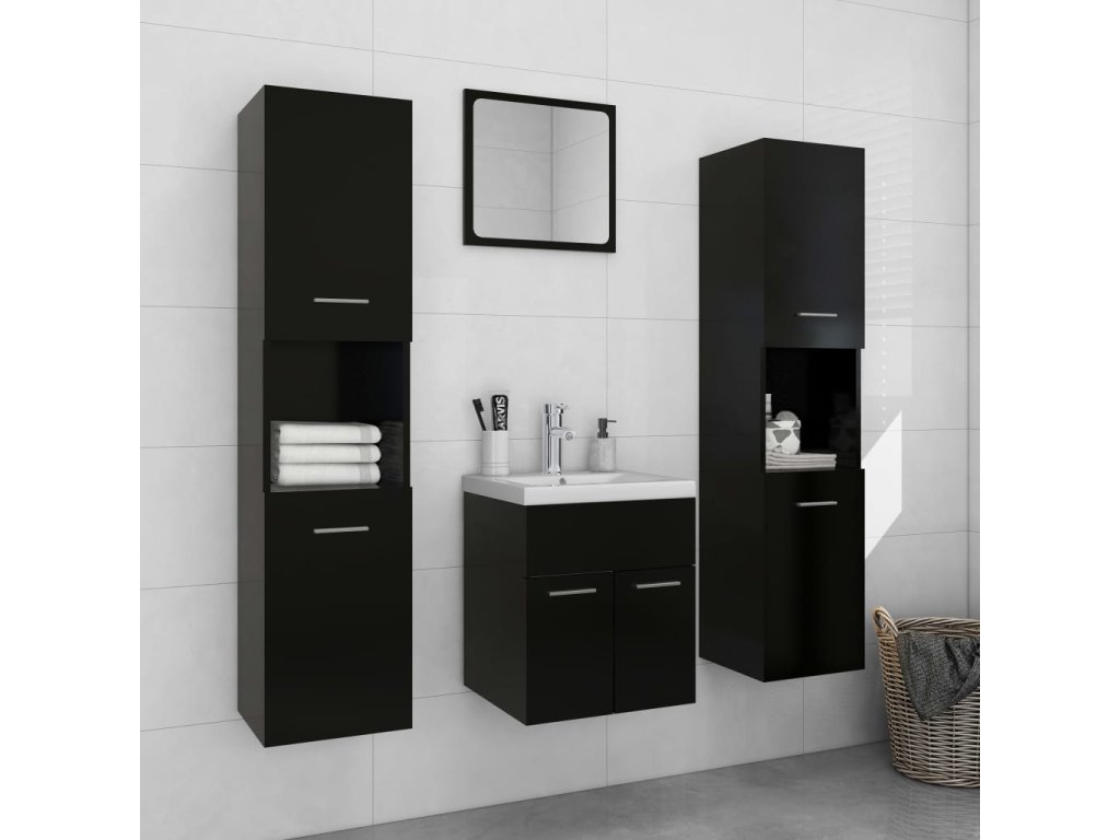 Sada nábytku obsahuje skříňku pod umyvadlo, 2 vysoké skříně a zrcadlo. Stylová umyvadlová skříňka má 1 přihrádku a nahoře je ideálně uzpůsobená k umístění umyvadla. V každé z vysokých skříní najdete za dvěma dvířky celkem 5 přihrádek, které vám poskytnou spoustu místa k uložení vašich věcí. Zrcadlo zase dodá vaší domácnosti nový půvab. Celý set koupelnového nábytku snadno očistíte navlhčeným hadříkem.