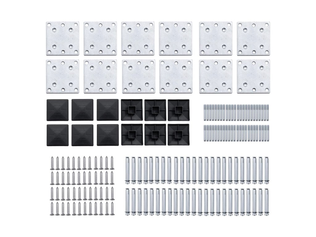Plotové panely mají modulární design, který umožňuje snadnou instalaci a neomezené prodlužovaní plotu. Sloupky mají tři drážky, takže můžete plot sestavit různými způsoby, například v přímce (180 stupňů), v pravém úhlu (90 stupňů) nebo ve tvaru písmene „T“. Multifunkční ocelové nohy lze upevnit dvěma způsoby. První způsob je našroubovat je na povrch dodanými kotevními šrouby. Druhý způsob je ukotvit je do cementového základu zemním hrotem (není součástí balení).