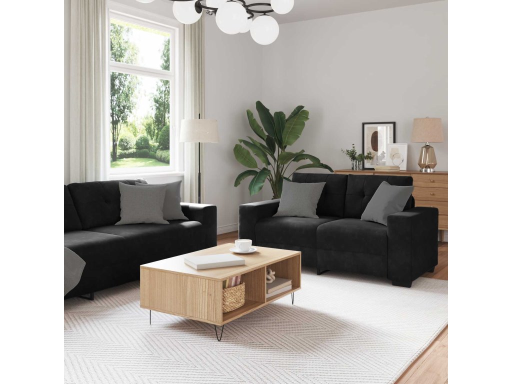 Set pohovek 3 pcs Černá 221 x 80 x 80 cm samet 3324644