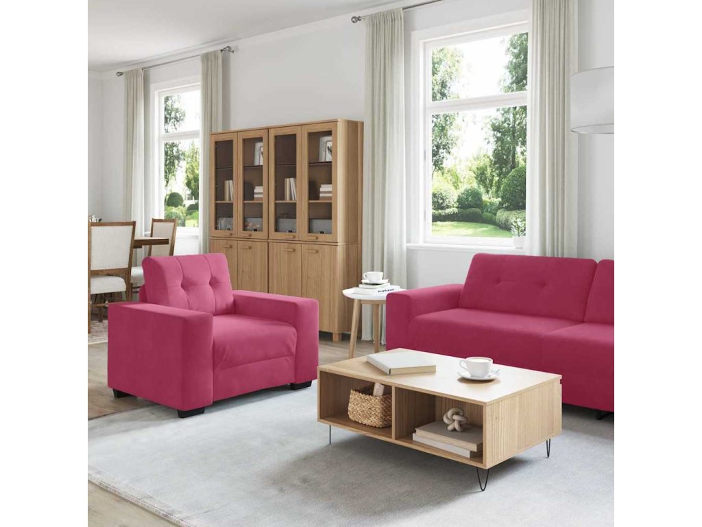 Tahle sada sametového sofa je skvělý doplněk do každého obýváku. Má moderní styl a prostorný design. Je to elegantní a minimalistické, což z ní dělá ideální kousek do současného domova, a navíc je tu dost místa pro rodinu i hosty. Luxusní sametový potah je hřejivý a příjemný, takže poskytuje pohodlí a styl v jednom. Skládá se z křesla, 2-místného a 3-místného sofa, takže si s tím lehce vyhraješ s uspořádáním, ať už chceš relaxovat s knihou nebo mít povídací večer s kamarády.