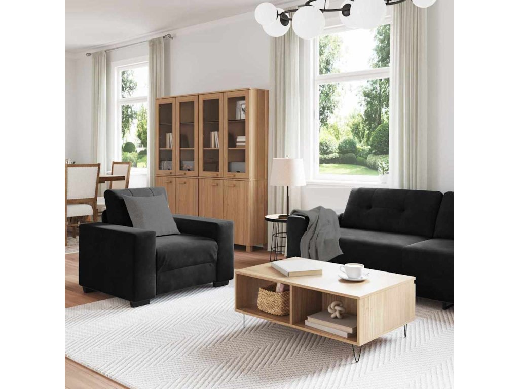 Tento moderní sametový pohovkový set dodá vašemu obýváku luxusní atmosféru. Díky elegantnímu designu a sametovému potahu vám poskytne styl a pohodlí. Ideální na setkání, jeho současný vzhled se hodí k mnoha stylům dekorace a vytváří příjemné místo k sezení a povídání. Set zahrnuje křeslo, pohodlnou dvoumístnou pohovku a prostornou třímístnou pohovku – perfektní pro hostění kámošů nebo jen tak lenošení s dobrou knihou.