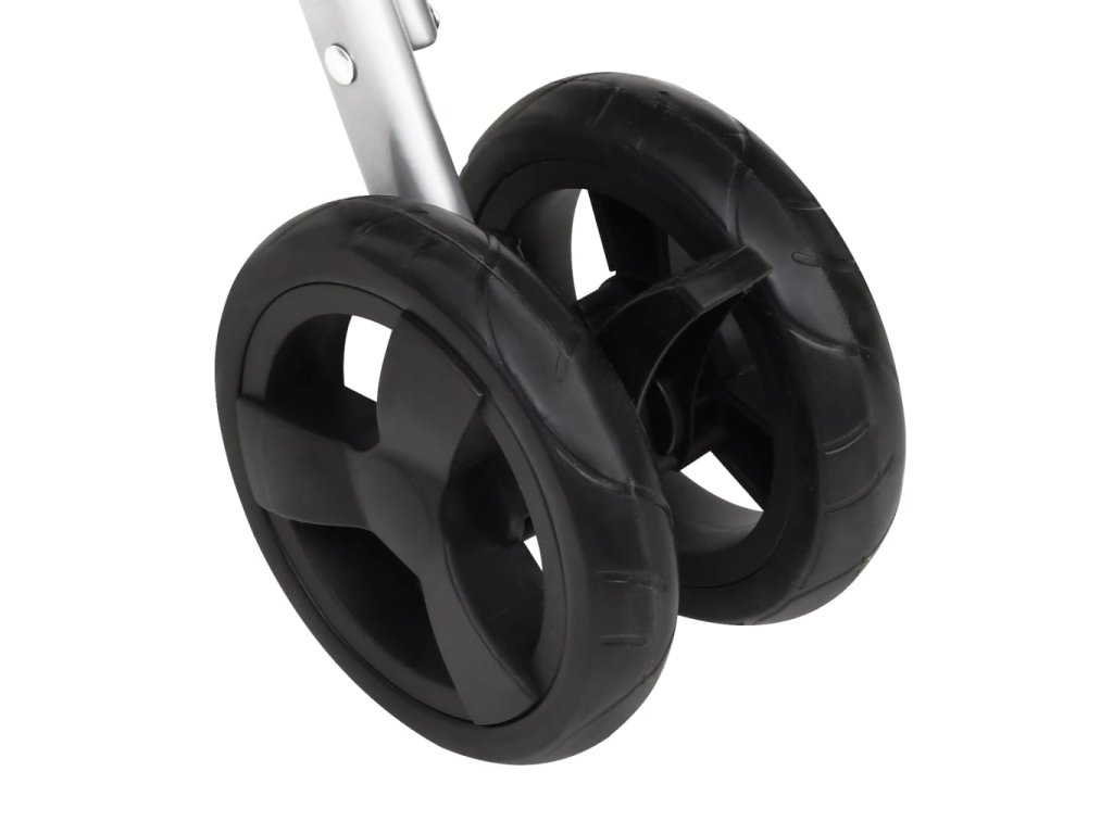 - Praktická kolečka: Přední kolečka lze otáčet do všech směrů, zatímco zadní kolečka s brzdami pomohou kočárek v případě potřeby zabrzdit.