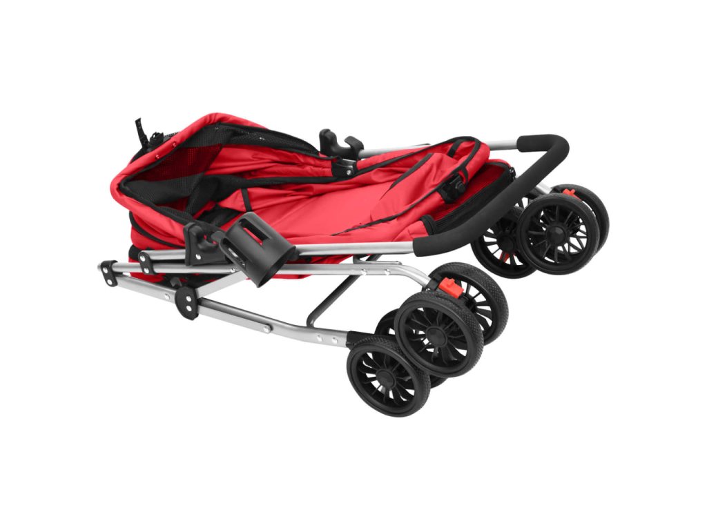 - Skládací funkce: Kočárek pro štěňata je skládací, což umožňuje úsporu místa při skladování a pohodlnou přepravu.
