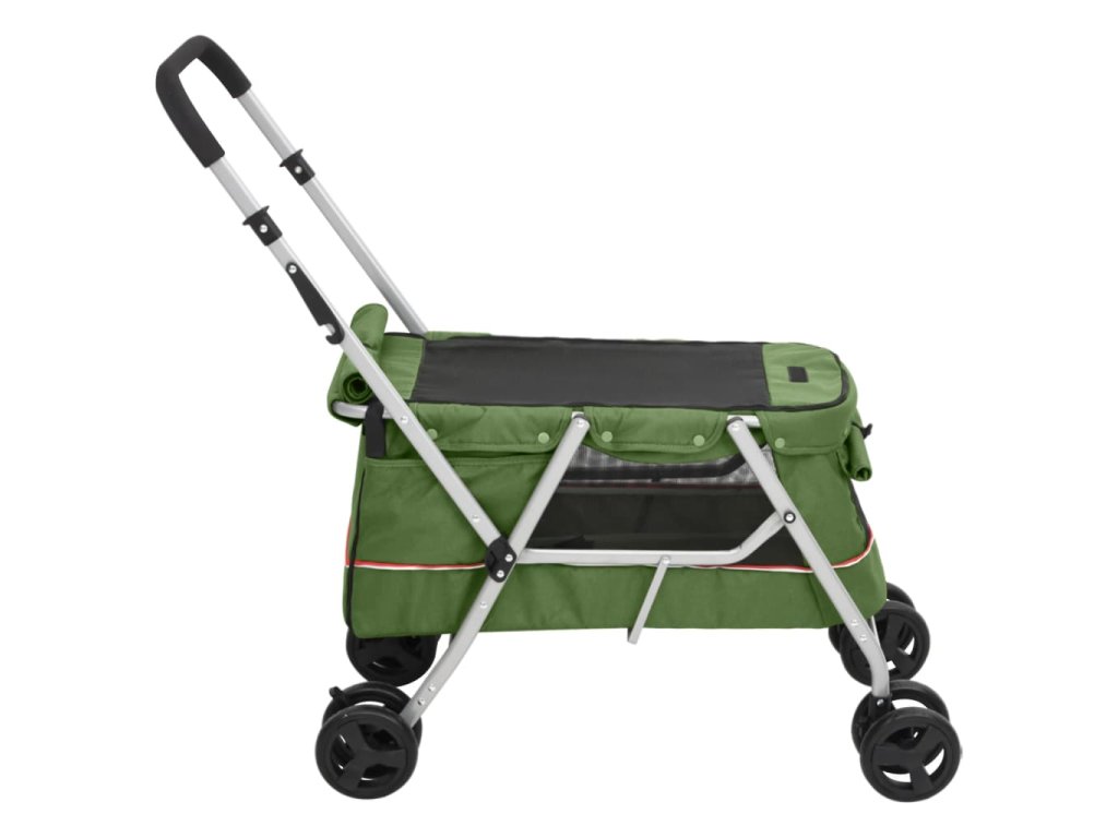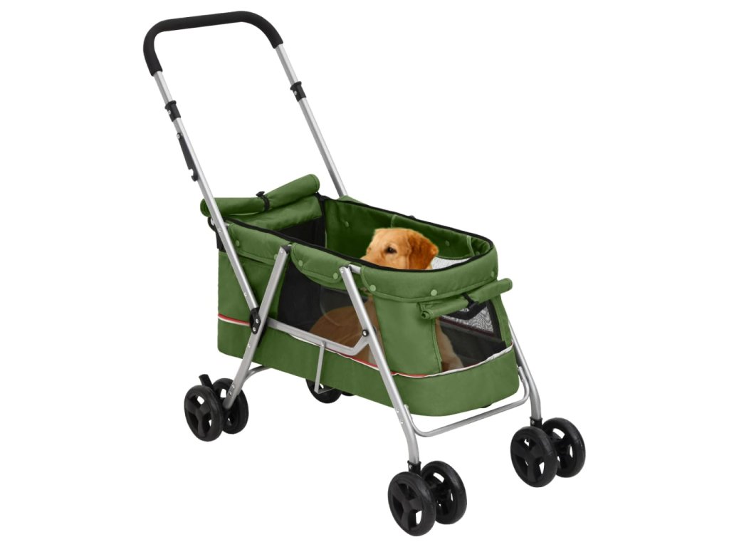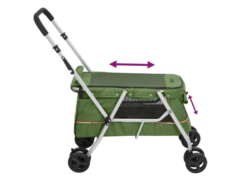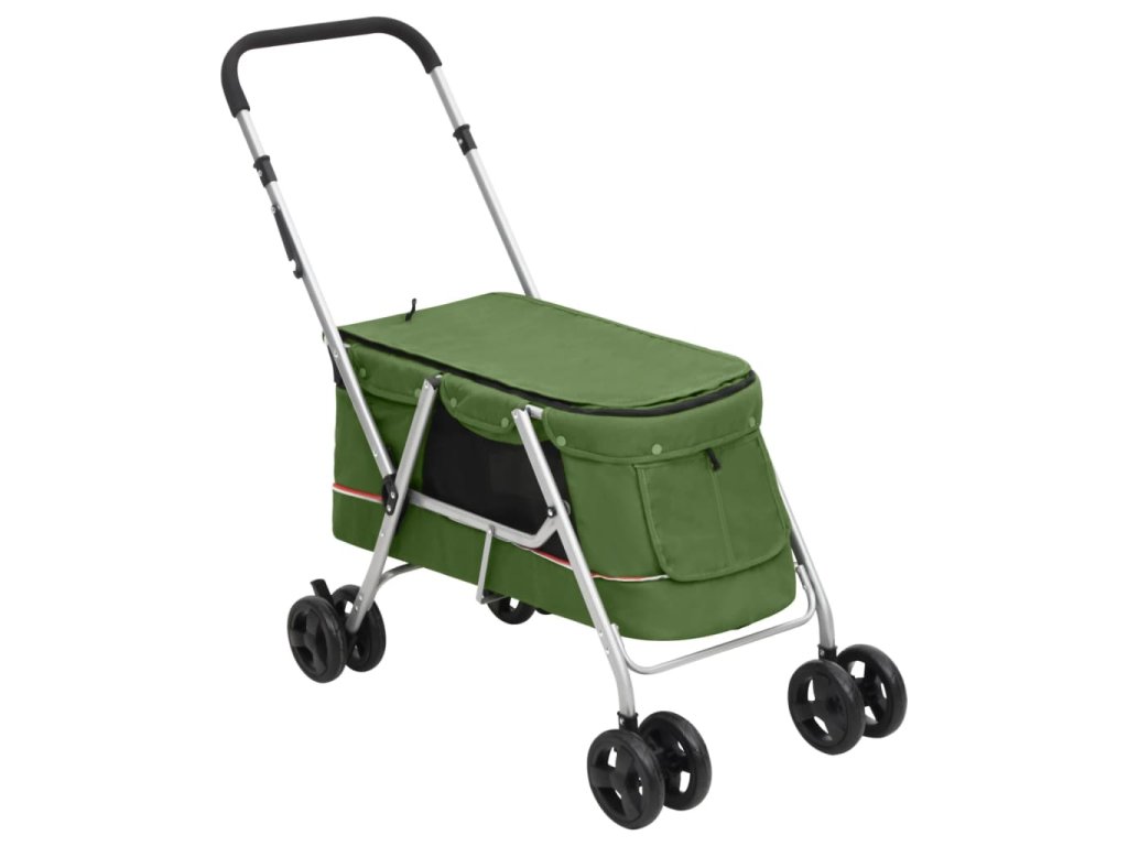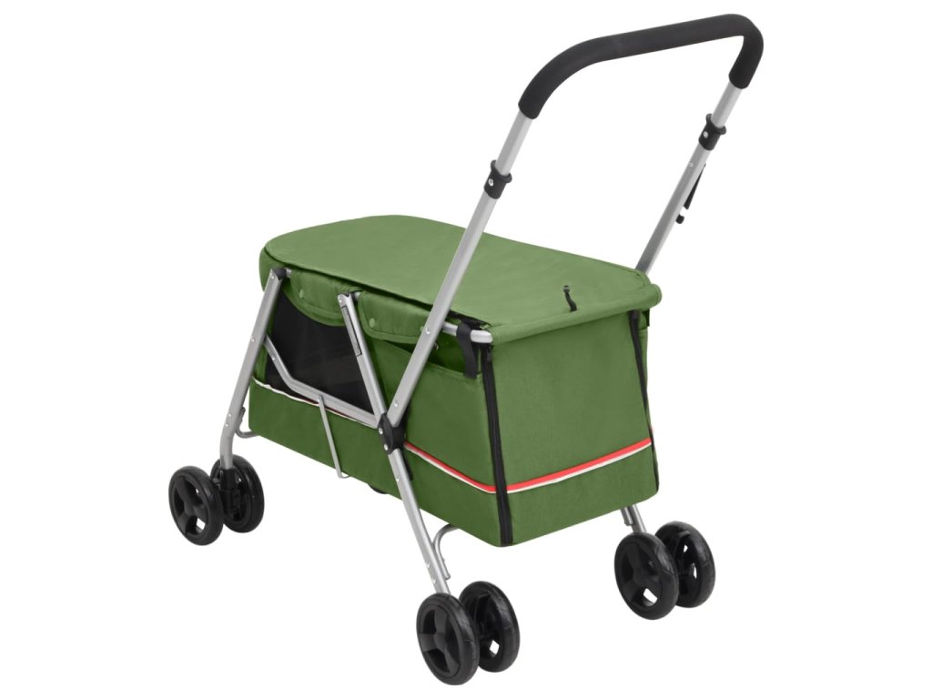 Skládací kočárek pro psa zelený 100 x 49 x 96 cm lněná tkanina 172204