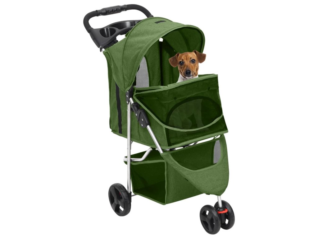 Skládací kočárek pro psa zelený 80x46x98 cm oxfordská tkanina 172198