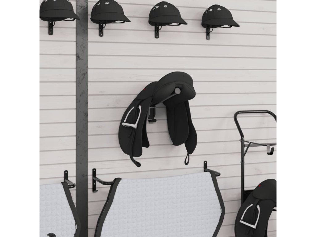 - Široké použití: Tento nástěnný stojan na sedlo je vhodný pro komerční i osobní použití a je ideální pro uspořádání místnosti s jezdeckými potřebami, stodoly nebo stáje.