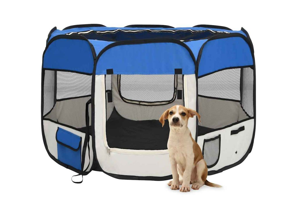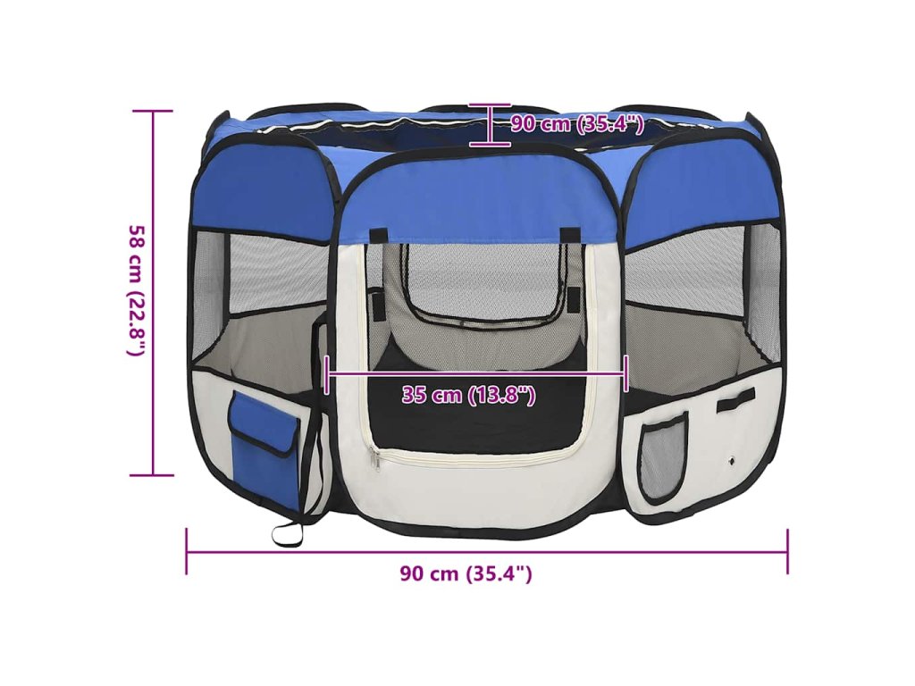 Skládací ohrádka pro psy s taškou modrá 90 x 90 x 58 cm 171013