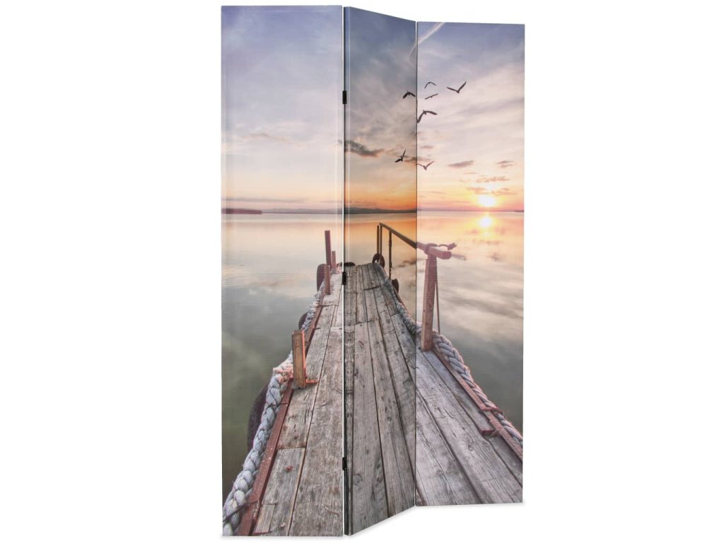 Paraván má masivní dřevěný rám a je pokrytý odolným plátnem, které má krásný fototisk zobrazující jezero při západu slunce. Ve vašem pokoji vytvoří klidné prostředí. Paraván lze také snadno složit pro úsporné skladování, když se nepoužívá.