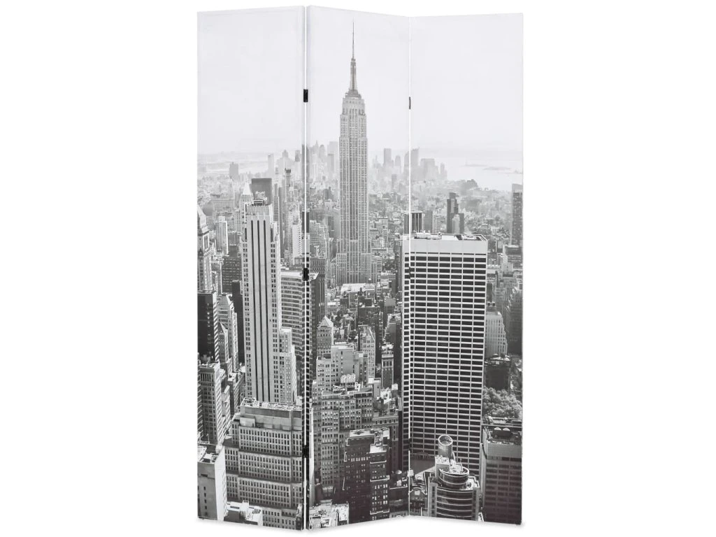 Tato dělící stěna má masivní dřevěný rám a je potažená odolným plátnem, na kterém je velkolepá fotografie v černobílém provedení vyobrazující pohled na denní New York a krásnou Empire State Building a vašemu interiéru dodá nádech moderního stylu. Tato dělící stěna může být pro úsporu místa také jednoduše složena, když ji právě nepoužíváte.