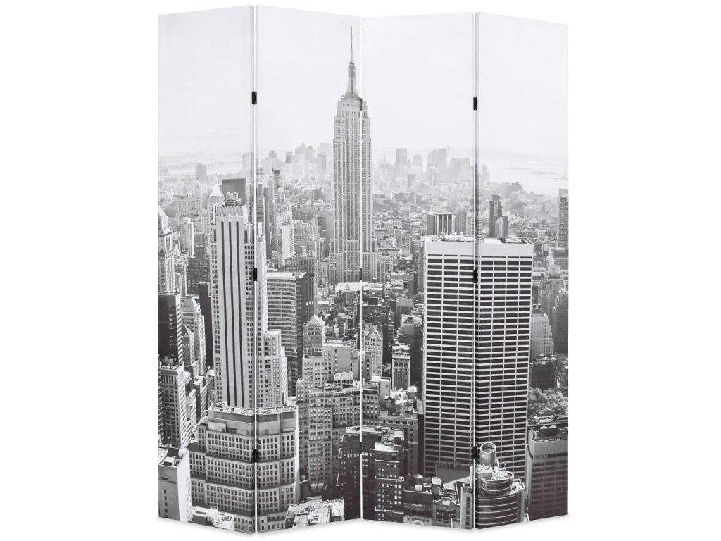 Tato dělící stěna má masivní dřevěný rám a je potažená odolným plátnem, na kterém je velkolepá fotografie v černobílém provedení vyobrazující pohled na denní New York a krásnou Empire State Building a vašemu interiéru dodá nádech moderního stylu. Tato dělící stěna může být pro úsporu místa také jednoduše složena, když ji právě nepoužíváte.