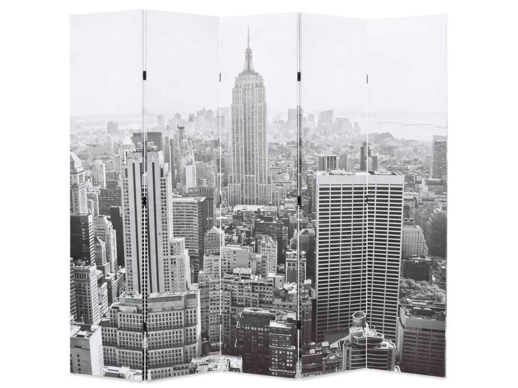 Tato dělící stěna má masivní dřevěný rám a je potažená odolným plátnem, na kterém je velkolepá fotografie v černobílém provedení vyobrazující pohled na denní New York a krásnou Empire State Building a vašemu interiéru dodá nádech moderního stylu. Tato dělící stěna může být pro úsporu místa také jednoduše složena, když ji právě nepoužíváte.