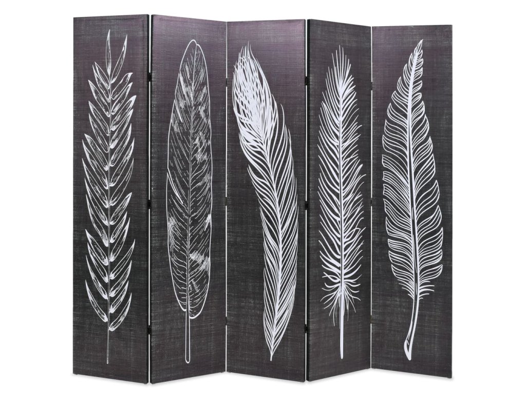 Paraván má masivní dřevěný rám a je pokryt odolným plátnem, který má na obou stranách sofistikovaný potisk na motiv pírek. Do vašeho pokoje vnese zajímavý styl a dekor. Paraván lze také snadno složit pro úsporné skladování, když ho právě nepoužíváte.