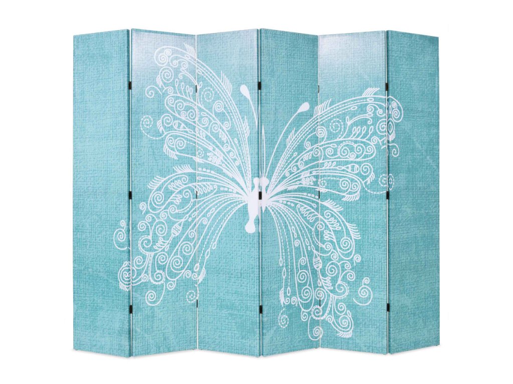 Skládací paraván 228 x 170 cm motýl modrý 245888