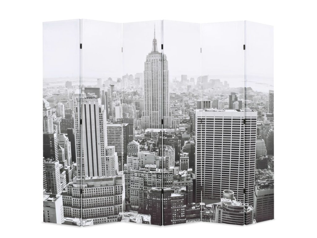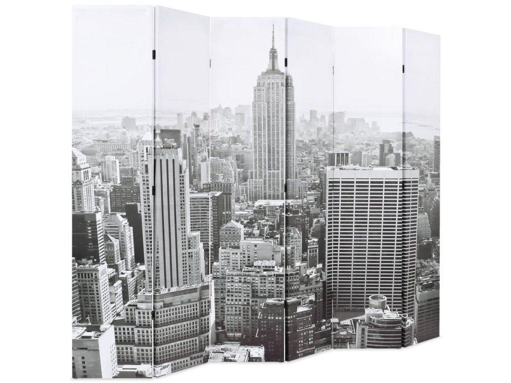 Tato dělící stěna má masivní dřevěný rám a je potažená odolným plátnem, na kterém je velkolepá fotografie v černobílém provedení vyobrazující pohled na denní New York a krásnou Empire State Building a vašemu interiéru dodá nádech moderního stylu. Tato dělící stěna může být pro úsporu místa také jednoduše složena, když ji právě nepoužíváte.