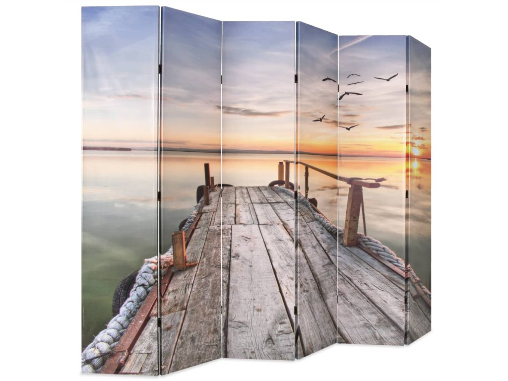 Paraván má masivní dřevěný rám a je pokrytý odolným plátnem, které má krásný fototisk zobrazující jezero při západu slunce. Ve vašem pokoji vytvoří klidné prostředí. Paraván lze také snadno složit pro úsporné skladování, když se nepoužívá.