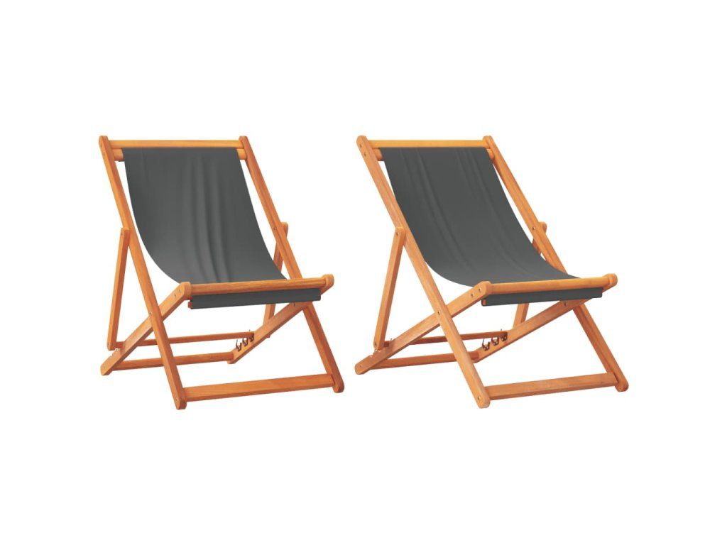 Relaxujte v těchto polohovatelných křeslech na pláži, v kempu nebo na zahradě! Skládací plážová křesla jsou vyrobena z masivního eukalyptového dřeva a polyesterové tkaniny, jsou odolná vůči povětrnostním vlivům a mají dlouhou životnost.