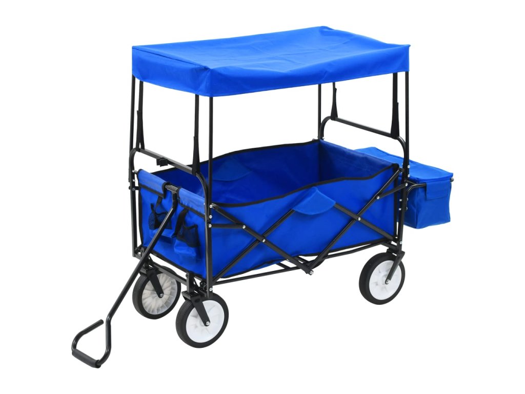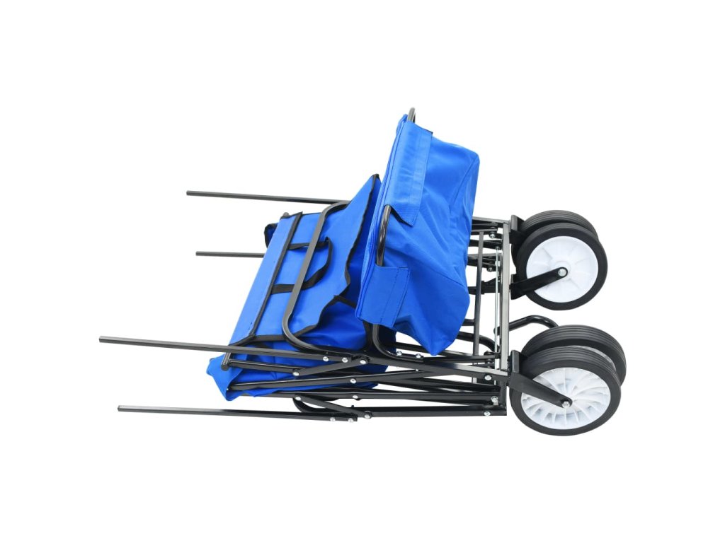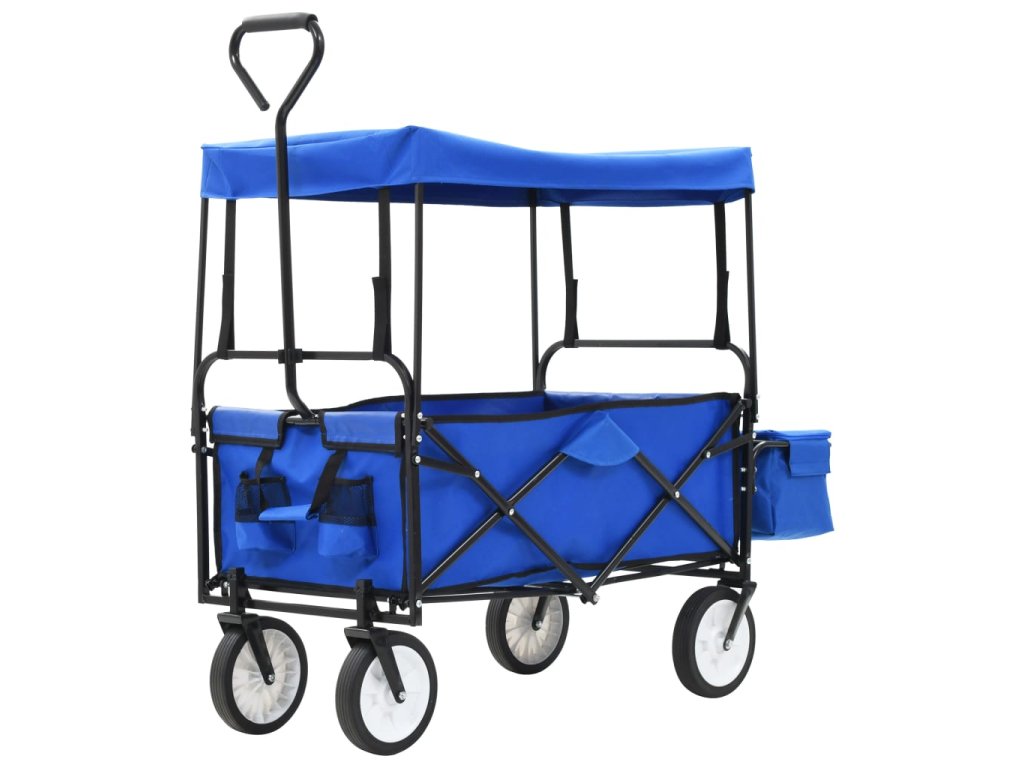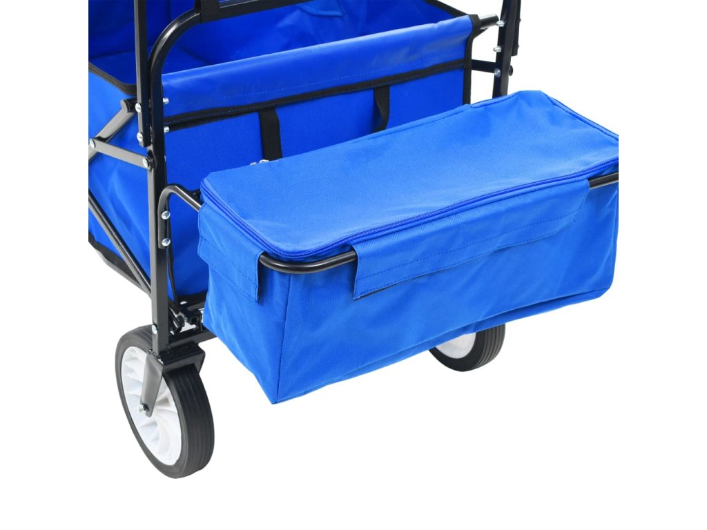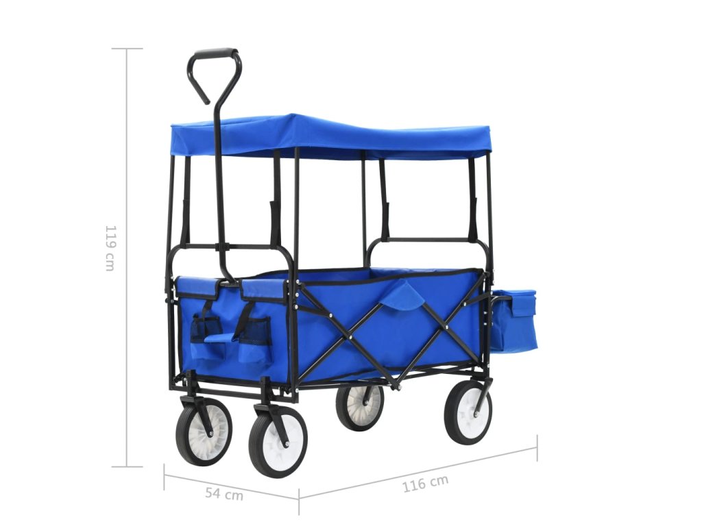 Skládací ruční vozík se stříškou ocelový modrý 147590