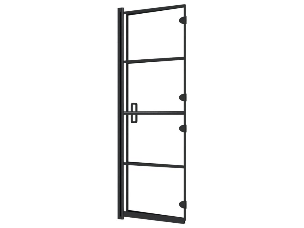 - Materiál: ESG (jednovrstvé bezpečnostní sklo) s černým pruhovým potiskem, hliník