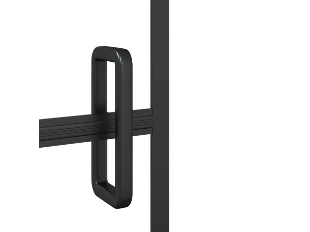 - Materiál: ESG (jednovrstvé bezpečnostní sklo) s černým pruhovým potiskem, hliník
