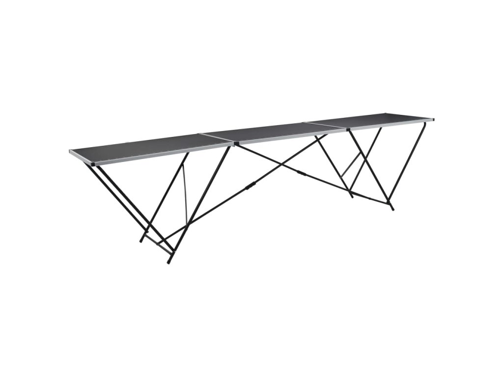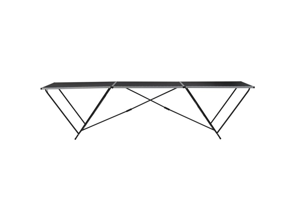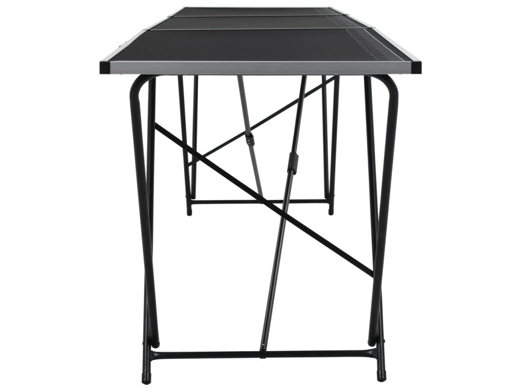Rám tohoto pracovního stolu je vyrobený z pevného a lehkého hliníku a má lehkou a omyvatelnou černou MDF desku s maximální nosností 30 kg. Stůl má ocelové trubkové nohy do tvaru W, které zajišťují jeho pevnost a odolnost. Pokud stůl právě nepoužíváte, můžete ho snadno složit pro skladování a přepravu.