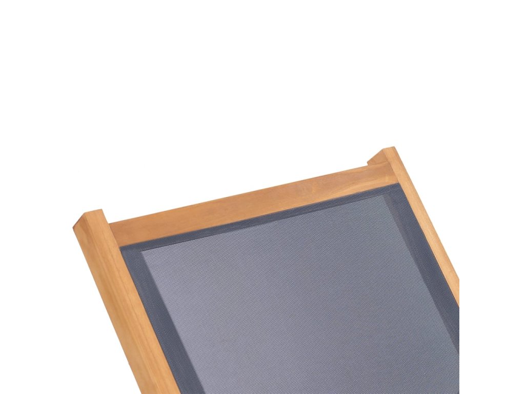 - Materiál: jemně broušené teakové tvrdé dřevo, ošetřené lazurou na vodní bázi, textilen