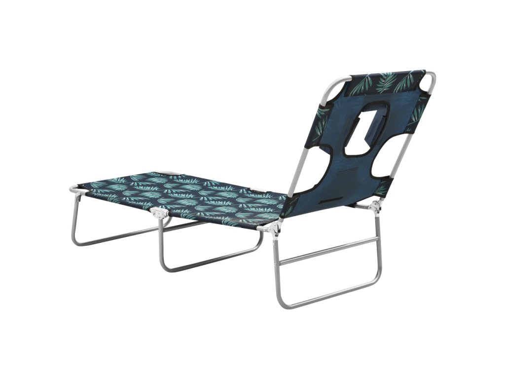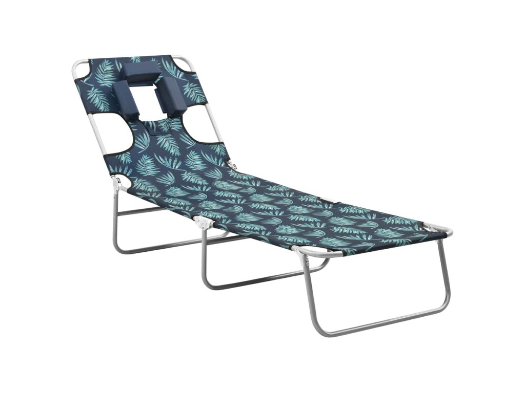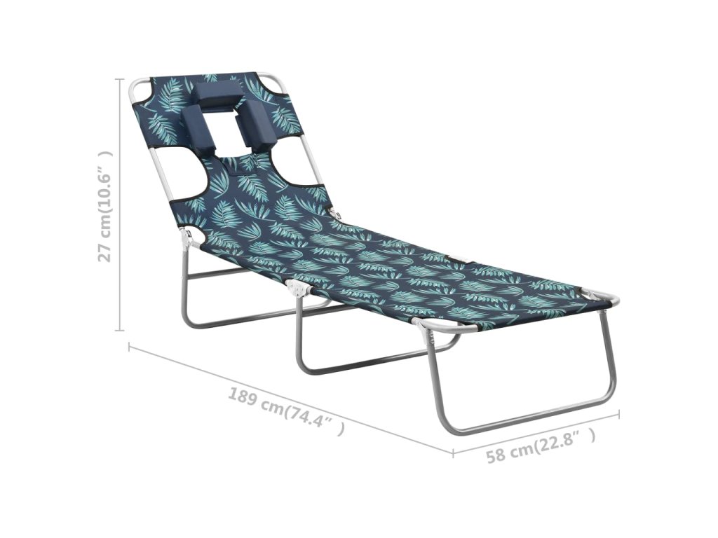 Skládací zahradní lehátko s podhlavníkem ocel potisk s listy 310334
