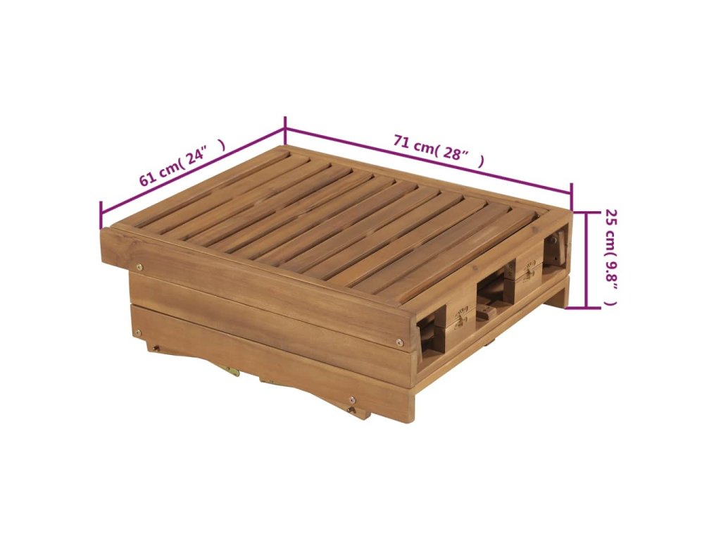 - Rozměry zahradního lehátka (při složení): 71 x 61 x 25 cm (D x Š x V)